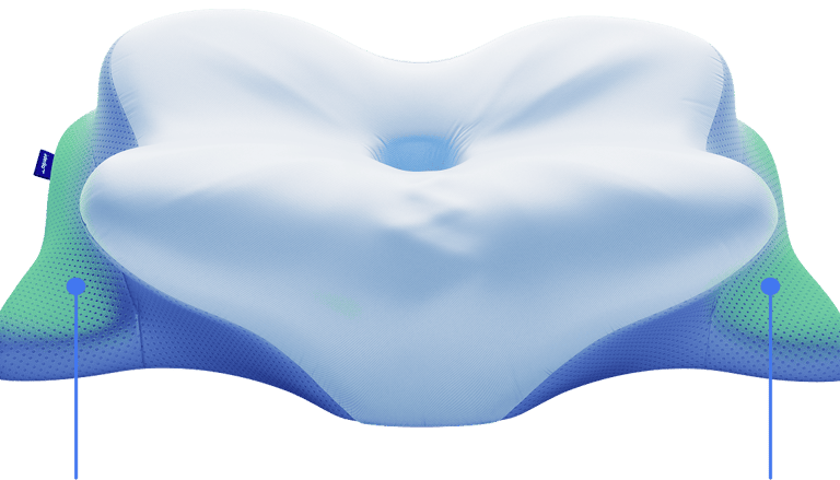 La forme incurvée de l’oreiller soutient la nuque et maintient la tête dans une position naturelle.
